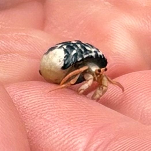 The interwebs tell me he’s a Puerto Rican Sand Crab. A variety only found on the islands of PR. He eats plankton and algae and other “organic detritus” meaning rotting plants or fecal material. Hey - whatever he wants, right?